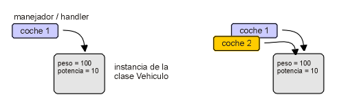//// asignacion de objetos = asignacion de manejadores (handlers)