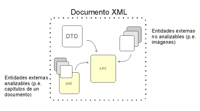 Estas entidades pueden ser analizables (p.e. trozos XML) o no analizables (p.e. imágenes o ficheros de música).